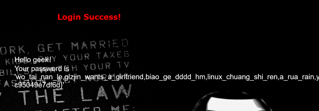 显示登入成功,确认为字符型注入,但是,不是我们想要的flag