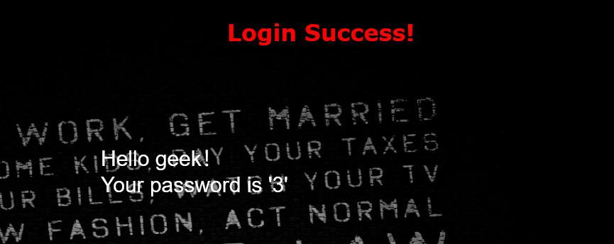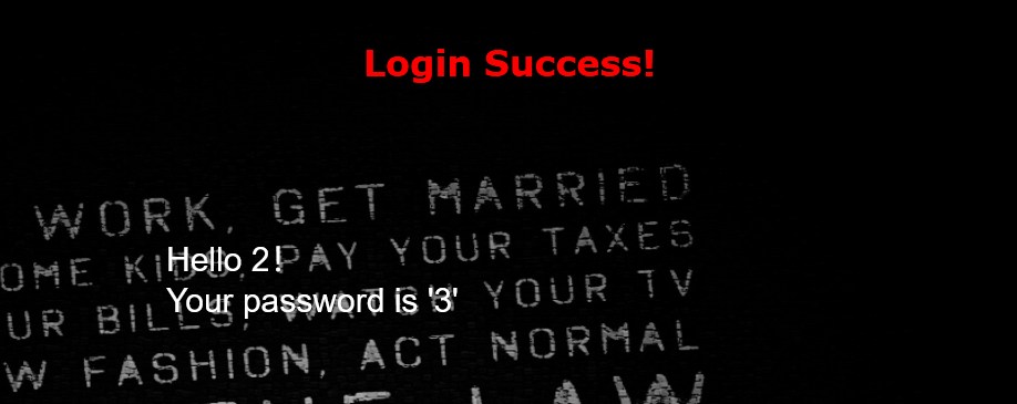 这个页面有两个可以显示数据的窗口,但是由于我们作为攻击者把database()放在第三个,所以页面显示时,把显示的数据放在了“Your password is”的后面