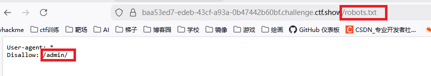 2、想到在url中插入robots.txt,看到目录中有一个admin文件