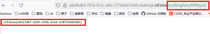 4、在url中加入nothinghere/fl000g.txt得到flag