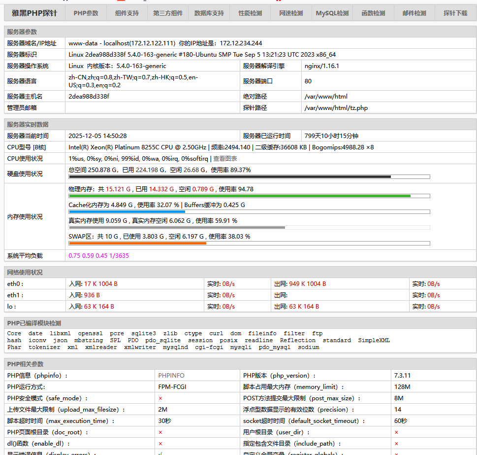 1、题目提到探针,在url中输入tz.php,发现是雅黑PHP探针
