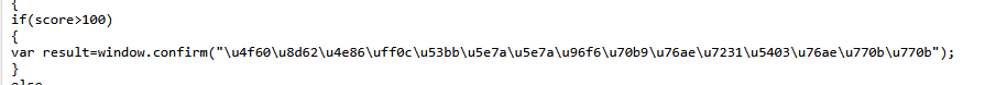 2、源码中的文件打开,看代码看到:\u4f60\u8d62\u4e86\uff0c\u53bb\u5e7a\u5e7a\u96f6\u70b9\u76ae\u7231\u5403\u76ae\u770b\u770b,这一串为Unicode码,进行解码,解码成中文:你赢了,去幺幺零点皮爱吃皮看看(110.php)