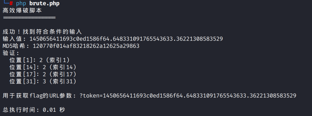 echo "\n用于获取flag的URL参数: ?token=" . urlencode($input) . "\n";