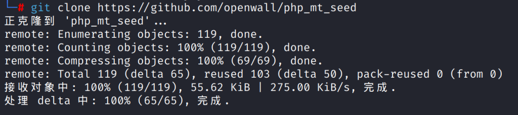 2、在kali中使用php_mt_seed工具,将他克隆下来,定位到php_mt_seed目录里,make后就可以用了