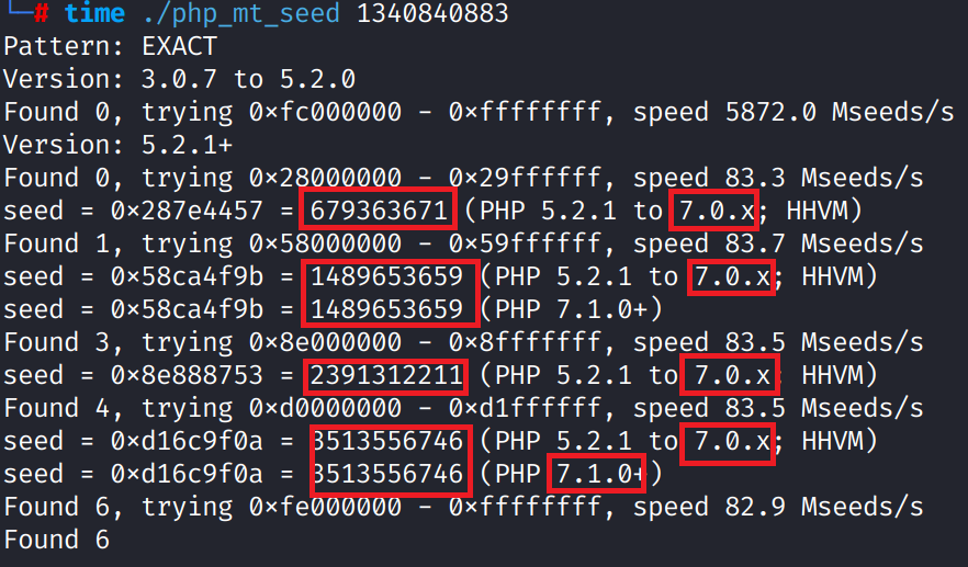 4、利用php_mt_seed工具得到seed,只要对应版本的seed