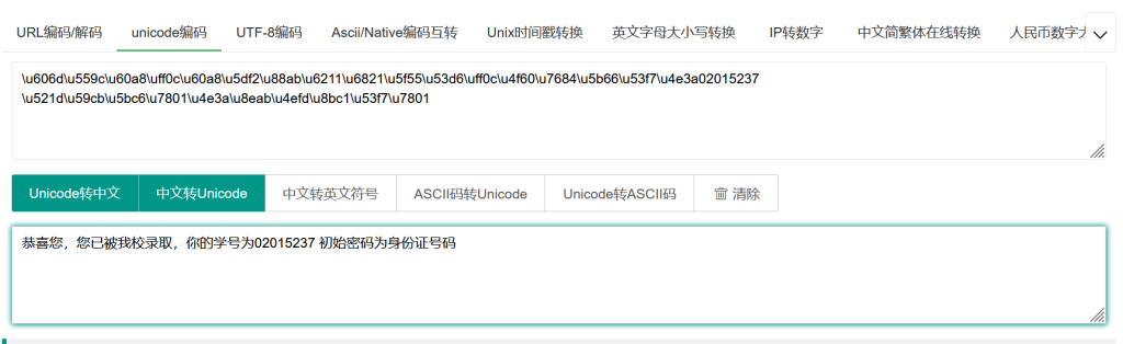 \u606d\u559c\u60a8\uff0c\u60a8\u5df2\u88ab\u6211\u6821\u5f55\u53d6\uff0c\u4f60\u7684\u5b66\u53f7\u4e3a02015237 \u521d\u59cb\u5bc6\u7801\u4e3a\u8eab\u4efd\u8bc1\u53f7\u7801